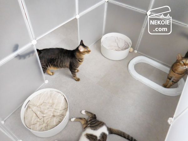 毎朝上から覗くと兄猫たちは全員ここにそろっているようになったので(弟猫は私と寝室で就寝)、このまま設置を続け、少しずつ改良を試していこうと思います。