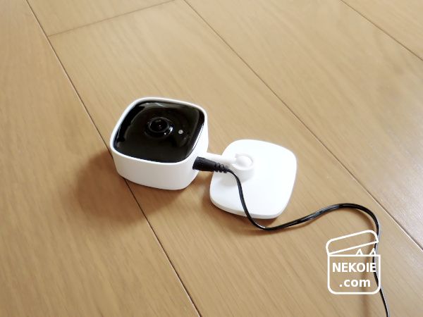 一台目はカメラが上下左右に回転する(スマホから操作する)タイプでしたが、今回は固定式。最初に決めた角度しか映しません。そのぶんお安く、小型の仕様。