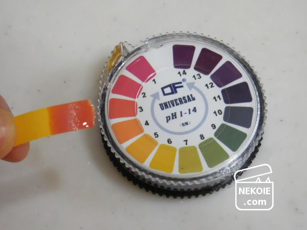 素人である自分なりの工夫や知識でそんなことを十年くらい続けているのだけれど、数年前にふと思い立って始めたのが、試験紙の、試験。といっても難しいことではなく、もともと液性がはっきりしている液体(たとえば石けん水など)に試験紙を浸してみて、その色の変化がおかしくないかを確認するだけの作業です。