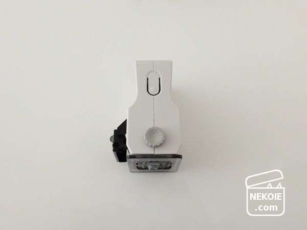 ダイヤルの上(画像では下)にあるU字のロックボタンを押すと、透明スライドが元の位置に戻ります。
