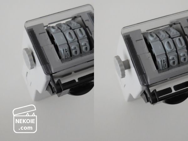 こういうデザインであれば一の位と十の位がズレてしまうこともないし、このスタンプはインクもセットされているので、別途「インク台」を用意する必要がありません。