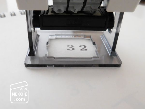 ここで少し注意が必要なのは、実際の数字はプラスチックの枠よりだいぶ内側に押されることと、二桁で押すときは左側(百の位の場所)に空白ができるので、それを加味する必要があること。