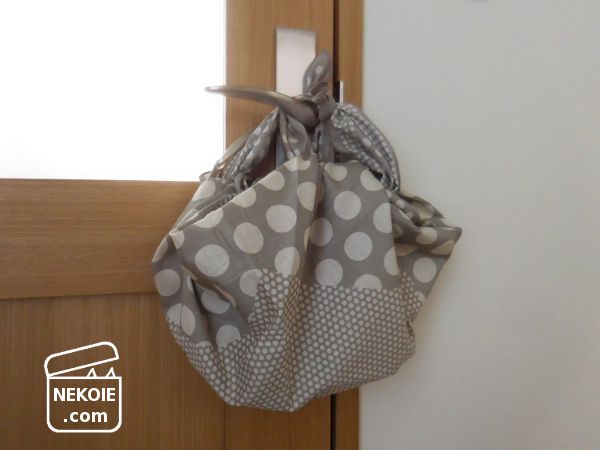 一枚の布でしかないやわらかい風呂敷バッグは、中に収めるものによっては不格好になるのがデメリット。たとえば角ばった文庫本などをそのまま入れれば、透けては見えなくとも本の輪郭があらわになります。