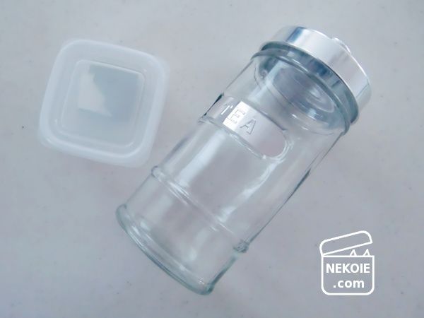 こちらは記憶の限りでは十年以上前に百円ショップで購入したお茶用(?)の瓶。簡易的なものとはいえパッキンもあります。