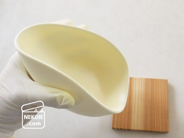 わが家にはすでに色々な猫用食器があるし、現時点で使っていないものも手元に残してあります。よほどのこだわりや特殊な用途でなければペット専用として市販されている食器を買うことも減ってきていたのだけれど、これは見た瞬間にほしいと思いました。