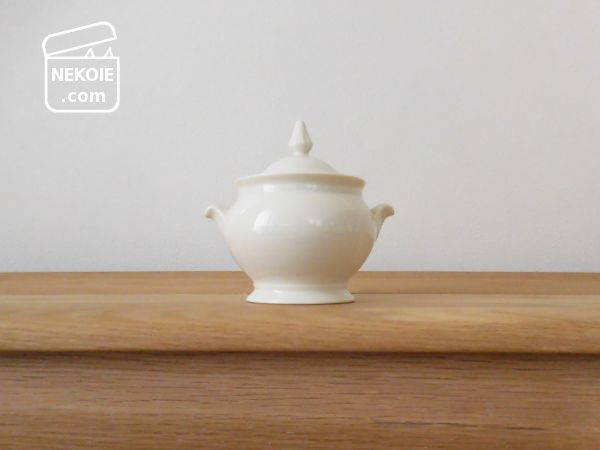 これは昔気に入って買ったものの、うまく使いこなせなかったシュガーポット。本来の用途では出番がないのにどうしても手放しがたく、たらいまわしのようになっていたのですが、これをお線香立てのうつわとすることに。