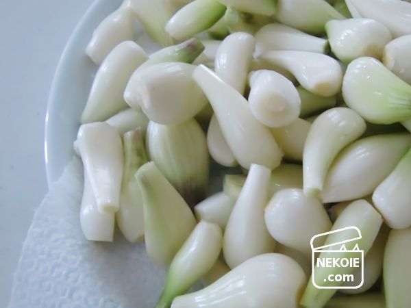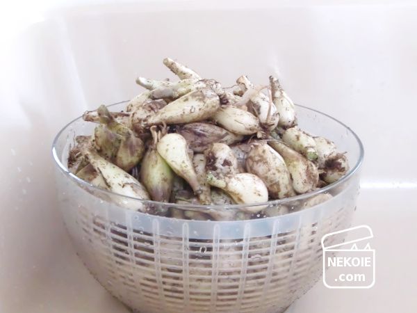 数日前にらっきょうが手に入ったので、今年も粗漬けをつくりました。