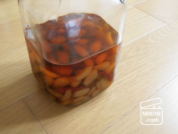 その際できるだけ水分を切って、今回はここに「梅酢」を注いでみることに。