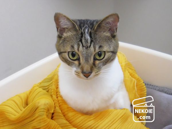 何か新しいものを見るとすぐに興味を持つ弟猫。でもちょっと確認したらすぐに去っていきました。