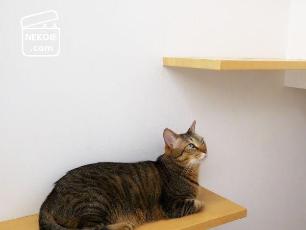 暖気は上がってしまうので、猫たちは天井近くのキャットステップでノビノビしていました。
