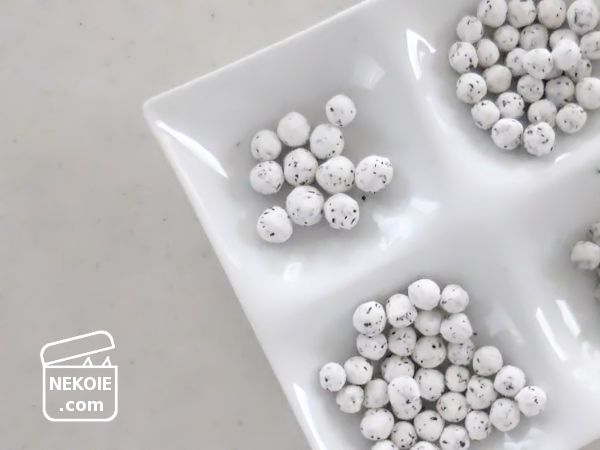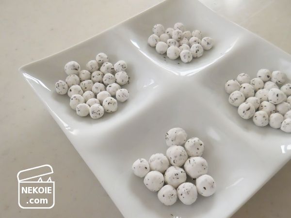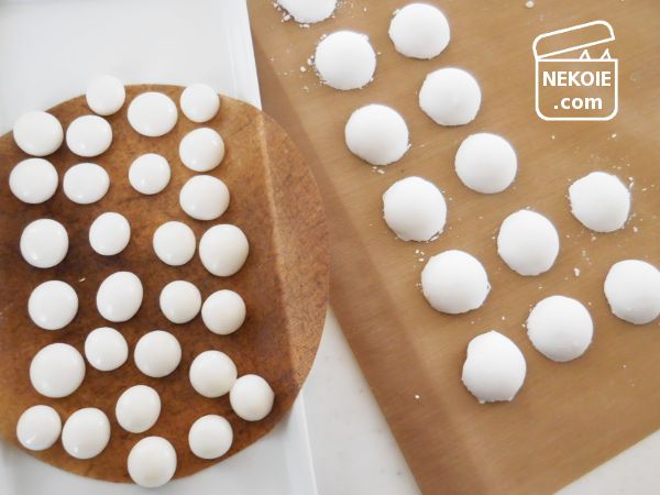 以前はシリコン型やスプーンに押しこんで「かわいい形」を目指していたのですが、手持ちの型はどれも大きく、食べるときに苦労したので、今は丸めるだけ。