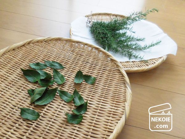 実は、他の季節しごと(梅や月桂樹)と前後しつつ、入梅前から進めていました。今はローズマリーもすっかり干しあがっています。