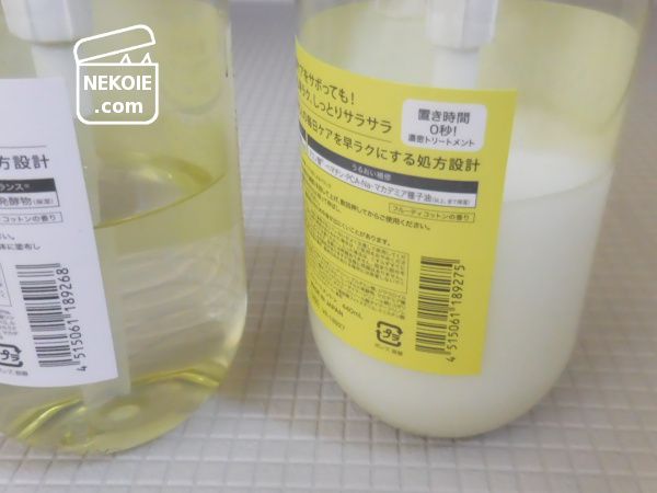 もっといえば、時には「もう少しコンディショナーを使いたい」と思っているときもワンプッシュ(同量使用)のルールに従って我慢することがあったのに、コンディショナーだけ余るのがどうにも腑に落ちなかったんです。
