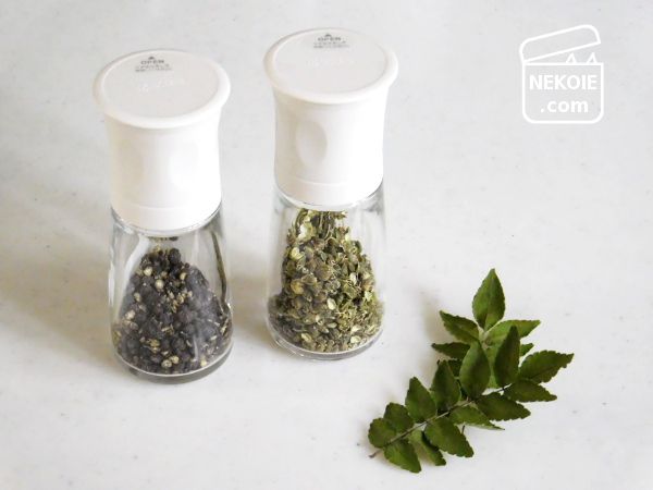 保存とミルを兼ねた瓶なら、その楽しみ方が可能。胡椒は当たり前のようにこの瓶に入れていたのに、なぜか山椒を入れることはこのときまで思いつきませんでした。