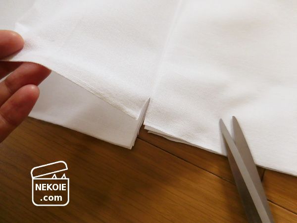 10mの生地なので必要な長さに自分でカット。抱っこひもに使うなら4.5m以上あると安心とのことでしたが、入れるのが猫(人間の赤ちゃんより小さめ)のため「4.2m」をとることに。実際にはそれでも少し生地が余るくらいの仕上がりでした。