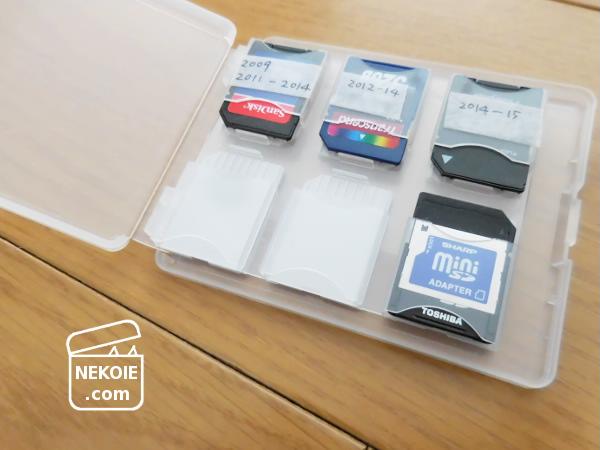 SDカード自体も、何年かに一度は大容量のものに買い替えて、データの引越しがてら整理を続けていけば、このケースに二十年分が収まるかなと感じました。