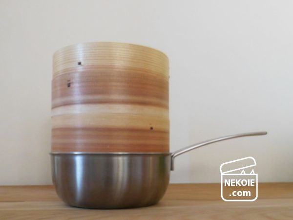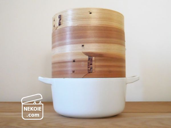 下の鍋は蒸気を上げるために湯を煮立たせておくための道具。せいろを重ねることさえできれば、手持ちのものでも使えるはず。