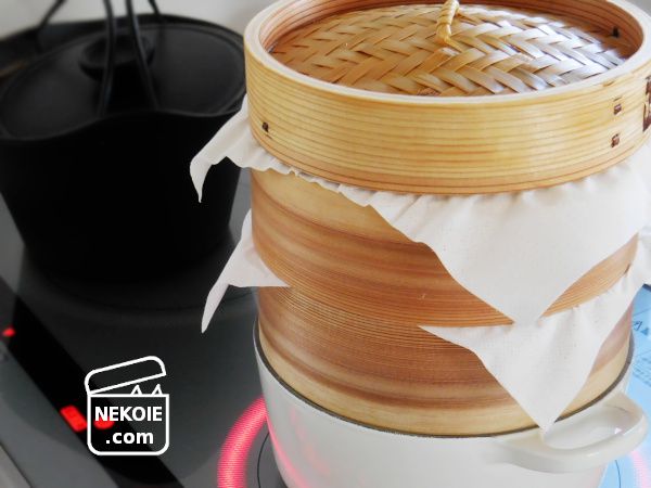 - 鍋の湯はたっぷりと、せいろをのせる前からぐつぐつと煮立たせておく(中火~強火)。
