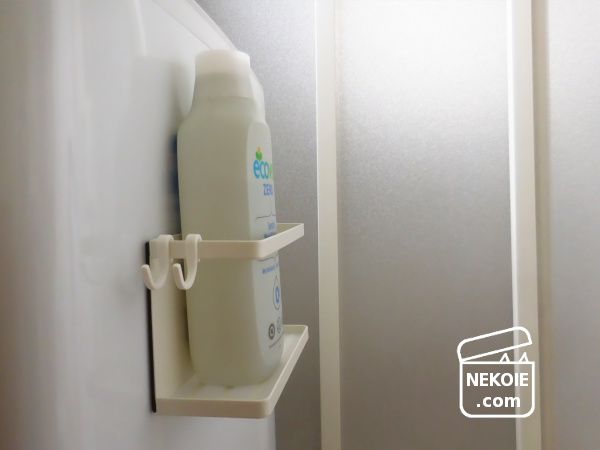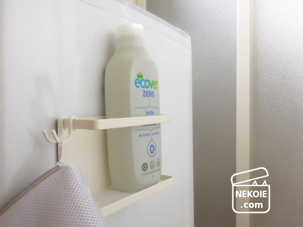 その後も並べ方や、ラックの設置位置(洗濯機の正面が横かなど)で試行錯誤していましたが、マグネットで貼りつけているという仕様を含め、ボトル二本が適正(限界)数だと考えるようになりました。