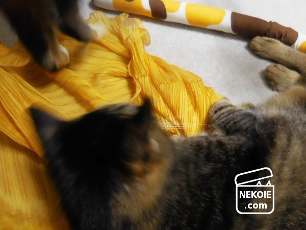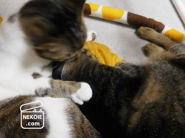 しばらくの格闘後、今日は弟猫が撤退していました。
