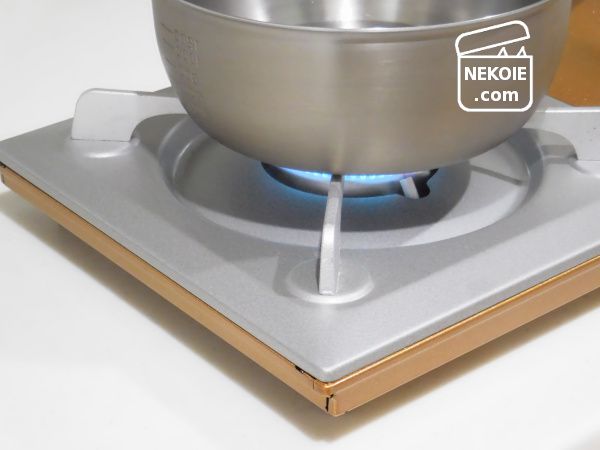 そういえばガスコンロの場合は、斜め上から見たときに炎が見えない程度(それ以下)の火力が理想だというのも思い出しました。
