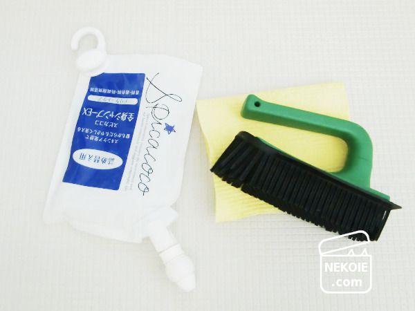 スーパーブラシは起毛素材の絨毯などから猫の毛をはらうのにも便利な道具。水を使わない掃除の際にも活用していますが、水濡れOKの掃除道具でもあるため今回も取り入れました。