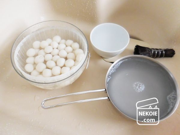 私もずっとそうしていたのですが、最近は自分の好みから「まん丸」の白玉だんごをつくることが増えたので、少し長めにゆで時間をとるようになりました。
