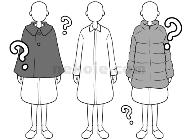 中に着るものを選ばない、という前提であればロングコートを一着持てば解決するはず。