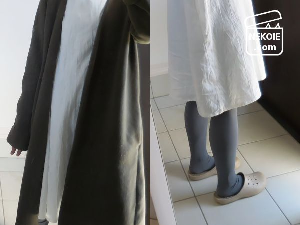 確実にワンピースの裾が覗くのですが、無い知恵絞って必死にコーデをがんばってみても、どうあがいても、ものすごく違和感を覚えました。