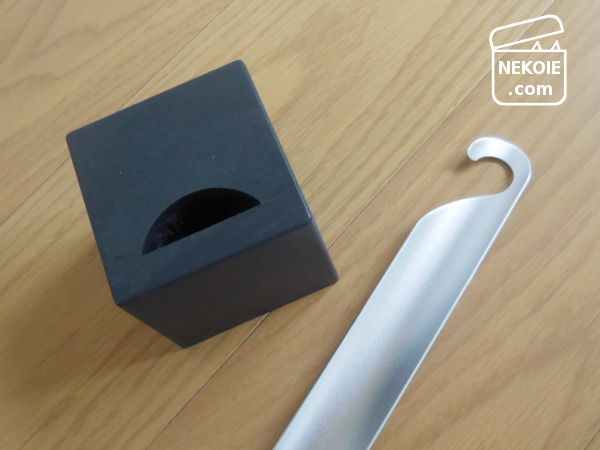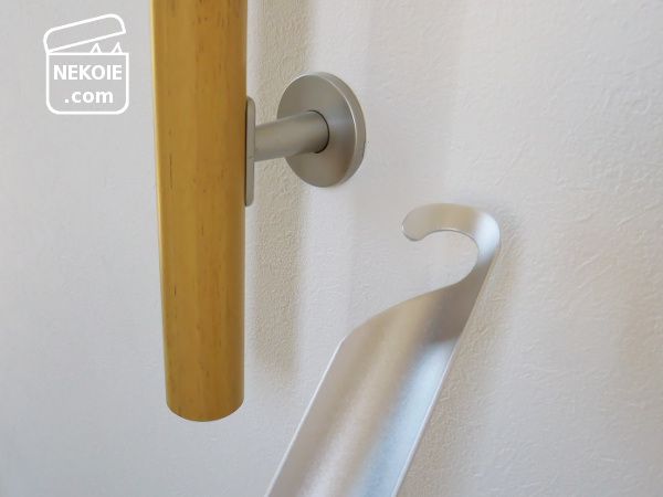 ただせまい玄関で立ち位置的にそれが難しいとき、とっさに「靴べらをお使いください」と言葉で伝えてしまうことが何度かあったのですが、目線よりも低い位置にあるためか、あるいはこのデザインゆえか、これだけ堂々とひっかけてあるにもかかわらず靴べらの存在に気づいていただけないことも少なくありません。