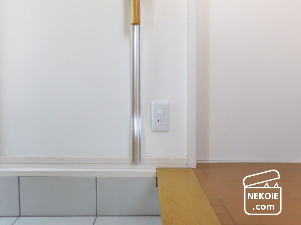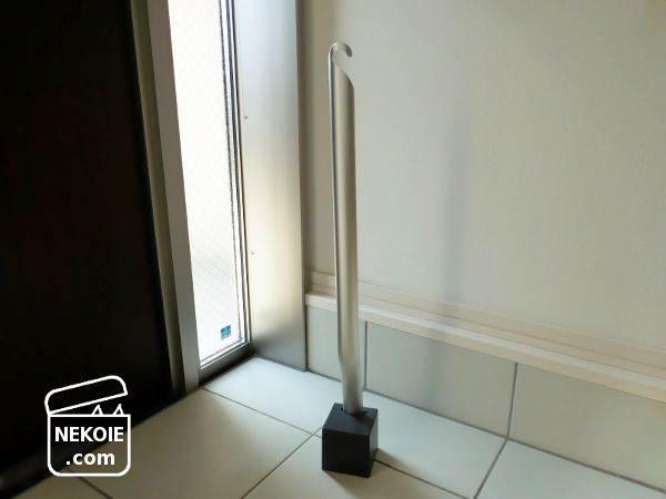 実はスタンドつきで、玄関のどこにでも置くことができます。わが家のように来客頻度が少ない家なら、ふだんは別の場所に置いておいて、お客様の予定があるときだけ玄関のすみに立てておくというのも便利でした。