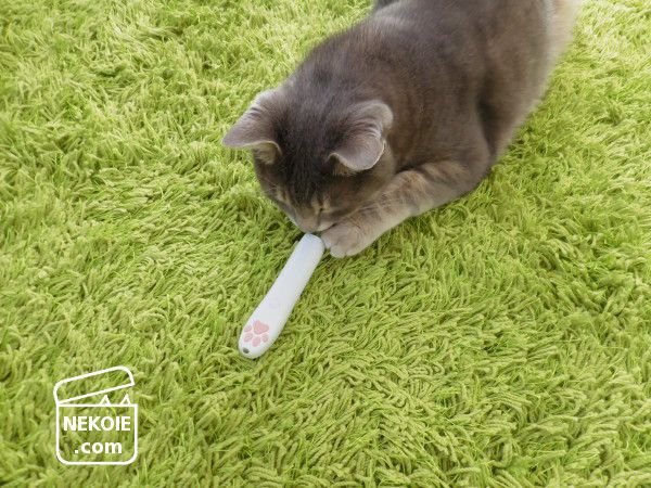 こちらは昔からの愛用品。でも故障などのトラブルを経て、三代目の光線型猫じゃらし。