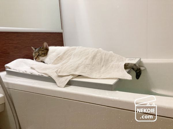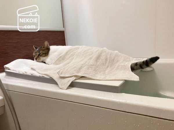 今日も入浴に同伴する弟猫。