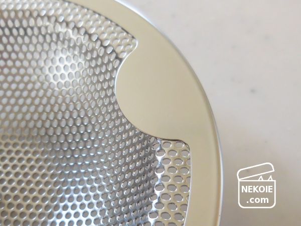 ふにゃふにゃと変形しない程度の硬さを持ちつつ、これまでの樹脂製フィルターよりも薄手。厚みがあるとブラシでこすってもフィルターの目に汚れが残りやすかったのですが、こちらは調理用ざるに近い薄さのおかげできれいに洗うことができそうでした。