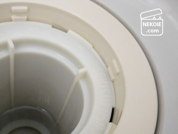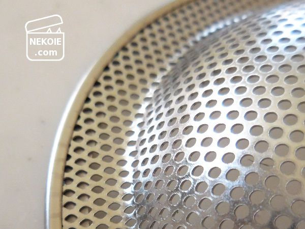 ごくごくシンプルなフィルターですが、くぼんだ中央にきちんとごみがたまってくれるし、小さめなパンチングの目も詰まることはありません。梅雨時から今にかけてもヌメリなどは発生せず、本当に気持ちよく使えています。