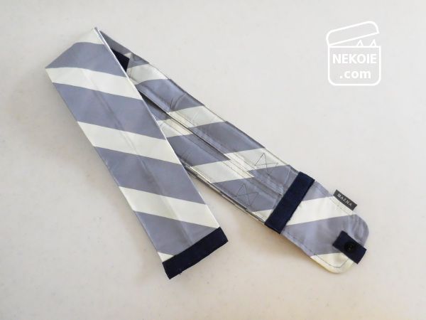 選んだ柄の影響か、広げるとネクタイのよう。私はボーダー柄が割と好きなのに、着てみるとあまり似合わない気がして服にはあまり選びません。だからこそバッグに採用してもコーデでかぶってしまう心配がないしいいかなと。