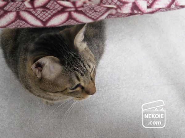 弟猫は椅子の上でごろごろしていたので、その撮影をしている最中、兄猫がそそっとやってきて、下で香箱座りをしていました。抱っこ待ちでした。