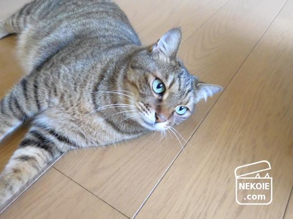 朝から買い物に出かけた週末、帰宅後に暑くて猫と床でゴロゴロしました。