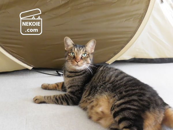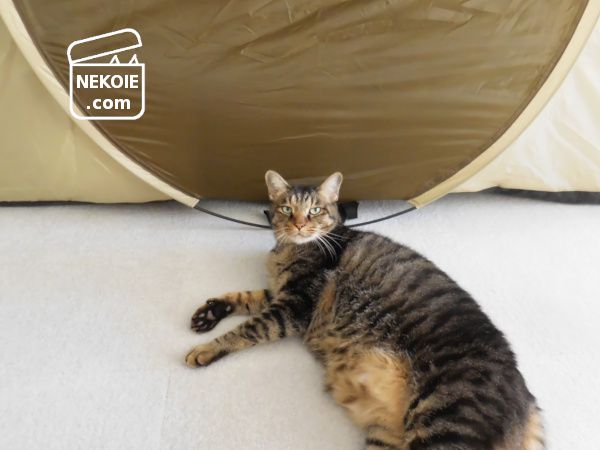 使うのは主に猫たちを想定していますが、ちょっとしたアウトドアには対応できる人間用のサイズ。私自身もたびたびもぐりこんでは猫たちとのんびりすごす時間を楽しんでいました。