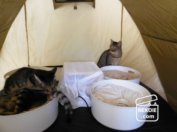 本格的な冬を前にして、寒さ対策の一つとして試してみることに。ほどなくして猫たちのほうも、完全にこの中を自分らの居場所だと認識してくれたようです。