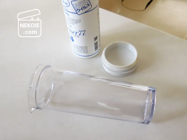 このスリムジャグは、本体がAS樹脂製です。この素材は基本的にアルコールに弱いのだそう。
