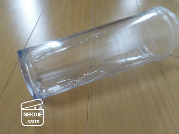 飲料用としても使い勝手は良かったので本当に残念なのですが、手元のスリムジャグは本来アクリル容器が持つ透明度の高さが損なわれ、安心安全を信じて使うことができなくなってしまい仕方がないという判断です。