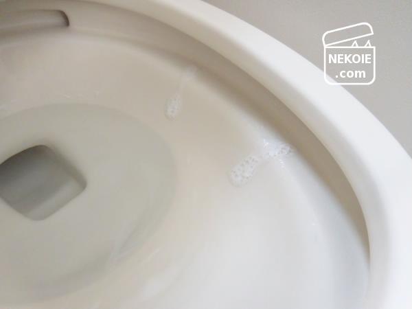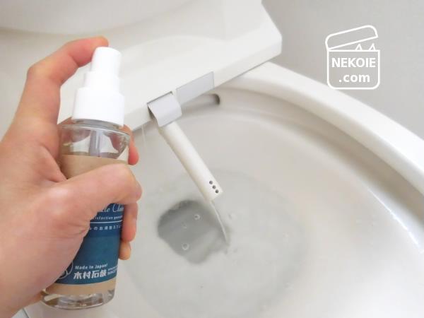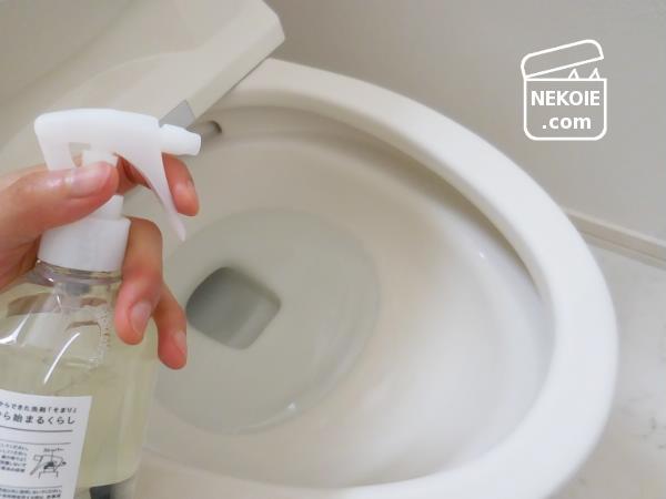 まずはトイレットペーパーにスプレーして、蓋や本体を拭き掃除。問題なかったので、そのあと内側には直接噴霧。