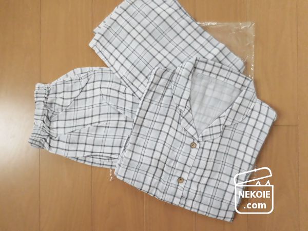 上下別の、パジャマといえばこの形、というデザインのもの。何年も普段着用のシンプルなワンピースをパジャマにしてきた私には本当に久しぶりに手にする形状です。