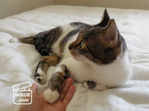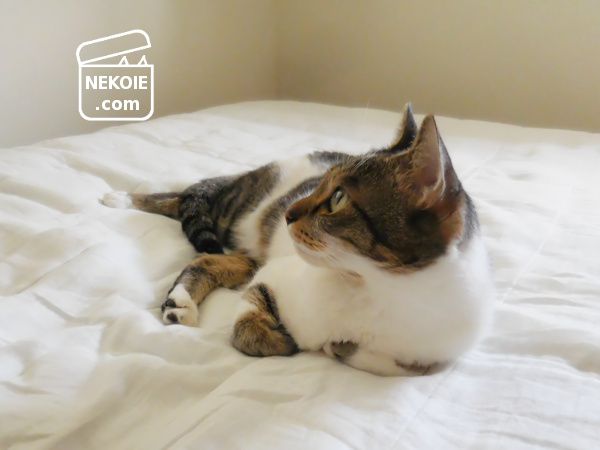 洗って敷き直した私の寝具の上で大暴れした後の弟猫。