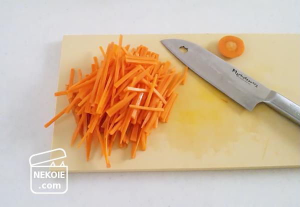 にんじんは免疫力を高める食材。冷え性対策にもなります。干して切り干し大根のようにしておくと、扱いが簡単に。