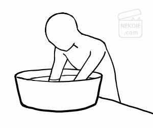 イラストでは突っ込んでいますが、温めるのは「肘」なので手は出してもよいそうです。