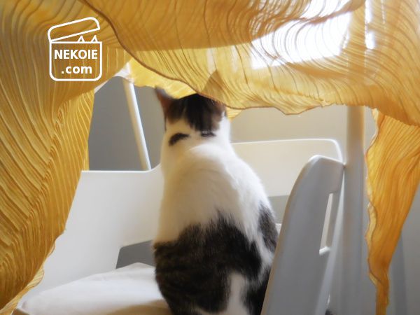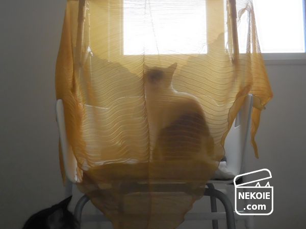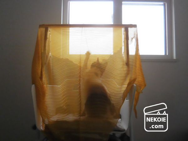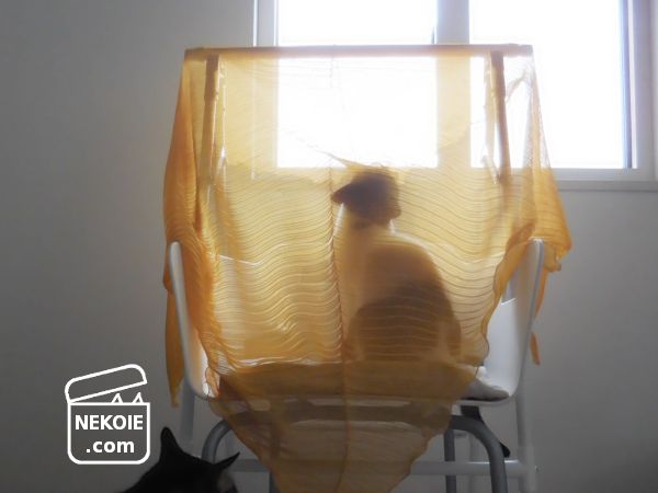 昨日のハンガーと布(ボレロだったもの)と、椅子を組み合わせてのお試しタイム。