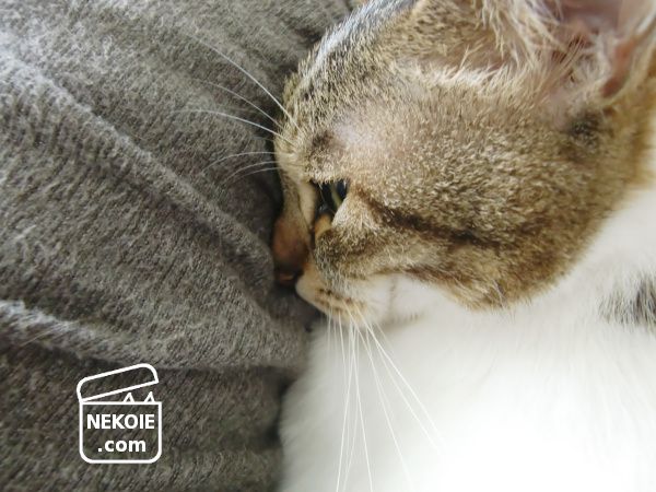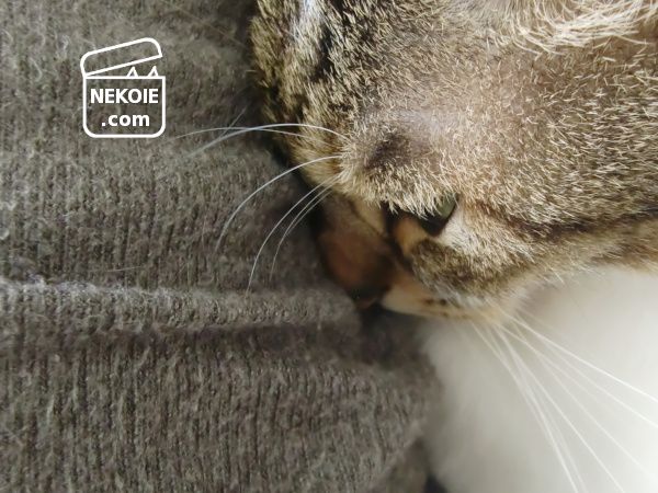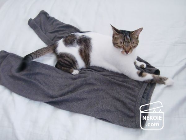 弟猫がくっついて眠ってくれる。私の衣類選びで大切な条件の一つ、猫が気に入ってくれることを難なくクリアできた幸せアイテムなのでした。