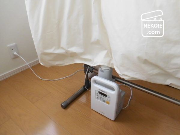 - 夏:寝具の湿気除去のため、(猫が)起きた後に使う。